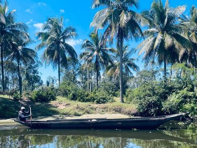 Vous descendez ensuite vers Mananjary, petite ville côtière au charme tranquille, avant de vivre une expérience rare : une navigation en chaland jusqu’à Nosy Varika. Cette traversée permet de découvrir la vie quotidienne le long du canal, les villages riverains, les mangroves et un environnement naturel encore intact.